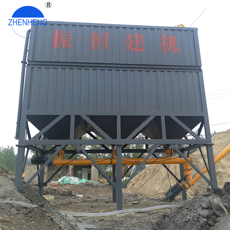 O pó de cimento no tipo 50kg/100kg ou tipo saco jumbo pode ser transferido para o misturador através do funil de cimento e da rosca transportadora.Dentro da tremonha de cimento existe uma lâmina que pode danificar o saco, deixar cair o material no fundo e enviá-lo para a betoneira por rosca transportadora.