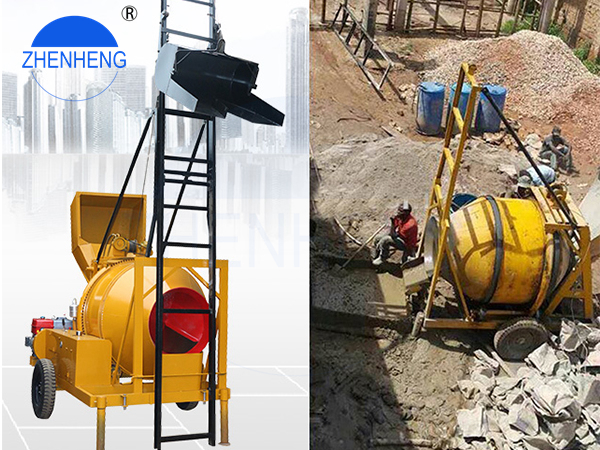 มันรวมการทำงานของเครื่องผสมคอนกรีตและตัวยกขนาดเล็กเข้าด้วยกันหลังจากที่วัสดุระบายออกจากเครื่องผสมแล้ว ถังยกสามารถจับวัสดุและยกได้สูงถึง 17 เมตร (ประมาณ 5 ชั้น) เพื่อจำหน่าย